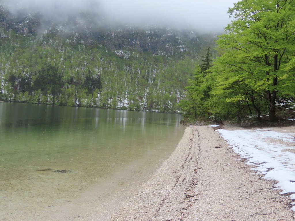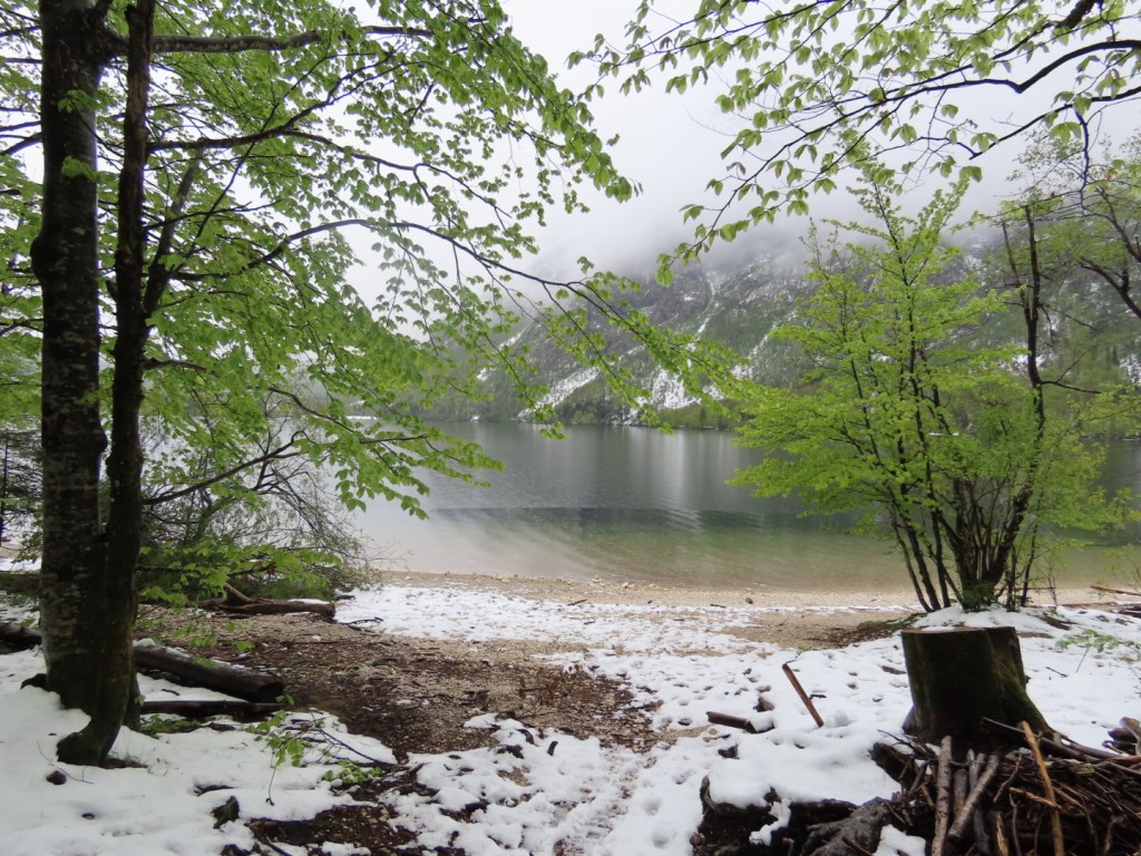 Nature in all of its glory. The way the mountains come and go through the swirling clouds is magical. This is lake Bohinj, a thirty minute drive from Bled. Apparently there are spectacular waterfalls to explore, a cable car lift to experience and gorges to wonder at. It was sleeting, cold and wet, so we went ‘home’ and put the kettle on.