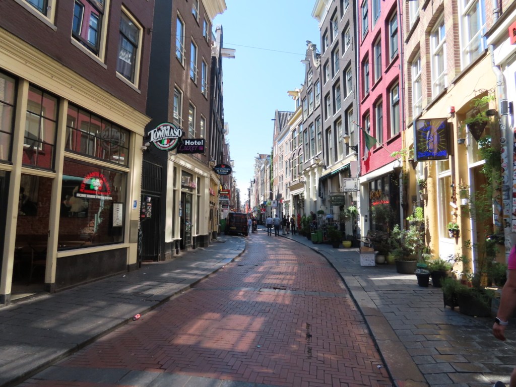 Ahhhh to be back in Amsterdam. Disembarking and trotting along the concourse into the lovely blue skies, sunshine and of course the ever present aroma of spliff. We very nearly caused yet another international incident by not geting out of the way quickly enough after hearing the cry of ‘police, police, make way’. I had forgotten that the police use push bikes. They really should have ‘nee naws’ fitted.