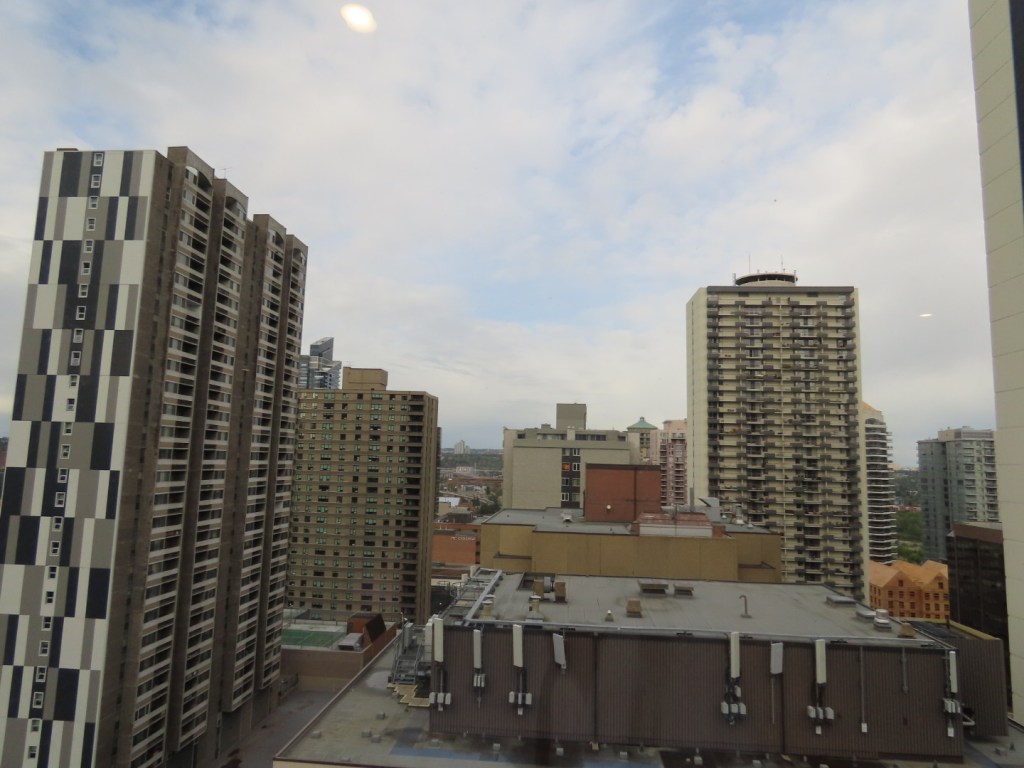 Twenty first floor view from a hotel in downtown Calgary where two days were spent recovering from our flight. A lovely hotel in a not so wonderful location.