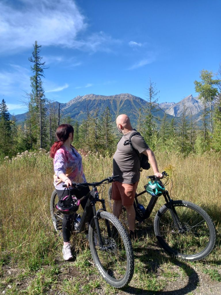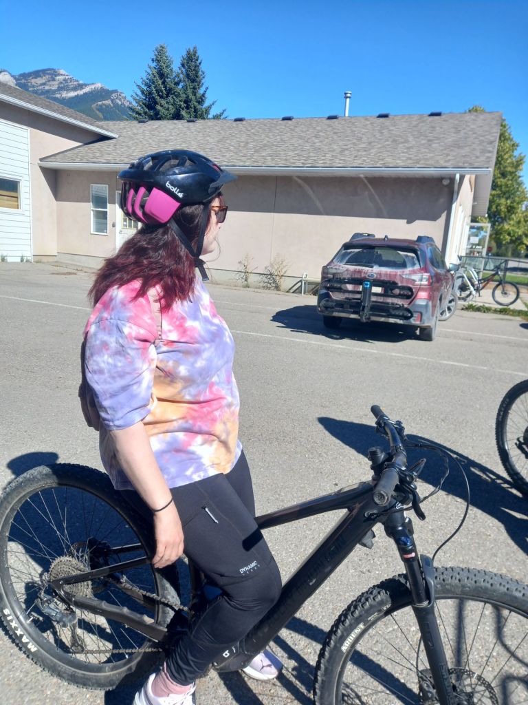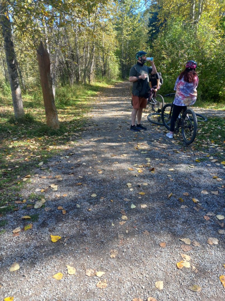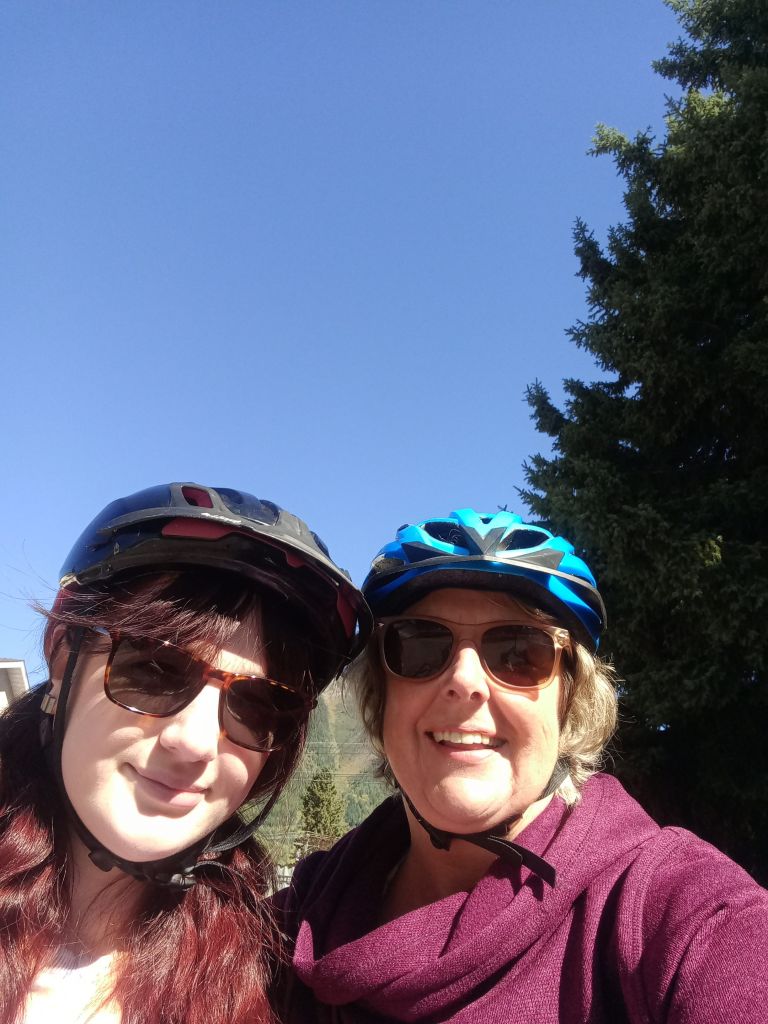 We rode the town loop then went on the Montaine Trail. I did do proper mountain biking ably instructed by son mine, who coached me down and up and around the switch backs and everything. Yes I fell off, this is normal and to be expected when you are me!