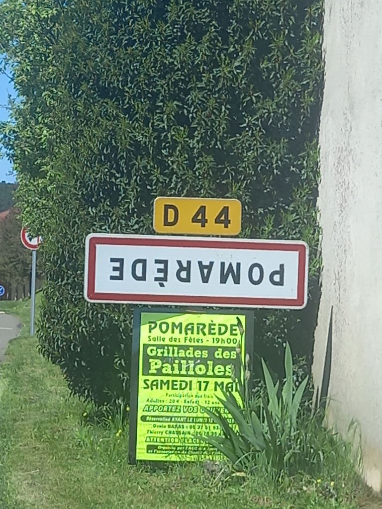 The way locals make politcal points is always imaginative. They have ‘upside downed’ loads of village signs to demonstrate their annoyance at imported lamb from New Zealand.